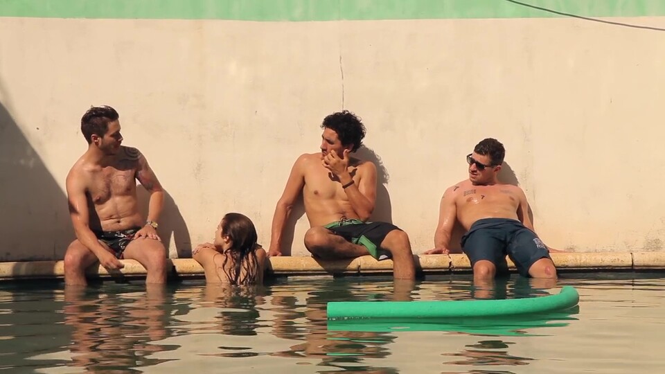 Seeing people making their minds up is not, after all, intrinsically cinematic. Yet, Berger has chosen the right context to do it, a plausible framework to the doubts of the protagonist Germán (Gabriel Epstein): a large house where a group of twenty something males wearing very little is spending a holiday.